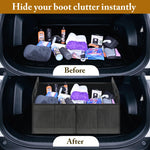 Automaze Trunk Organiser For Cars & SUV's, Foldable 2 Compartment Automotive Storage Box With 10 Pockets, Anti-Slip Velcro, Portable Boot Organiser