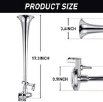 Details: Specification: 100% quality assurance tested, more responsive, less expensive, easier to install. Suitable for cars, trucks, boats, motorcycles, any 12V vehicles. Single trumpet, no air system needed. Easy to fit, glistening chrome finishing and tuned train horn sound. Attachment screws and brackets included. This air horn can fit in almost any vehicle, and deliver the big sound you need. Although it is a small size air horn that provides a very loud sound. These kits are a great way to give that loud, bellowing sound without taking up a great amount of space.