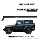 Automaze Side Wind-ow Deflector Rain Door Visor Compatible for Mahindra Thar 2020+ Models| Chrome/Silver Line, Warranty, Set of 4 Pc, Unbreakable Material