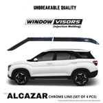 Automaze Side Wind-ow Deflector Rain Door Visor Compatible for Hyundai Alcazar All Models| Chrome/Silver Line, Warranty, Set of 4 Pc, Unbreakable Material